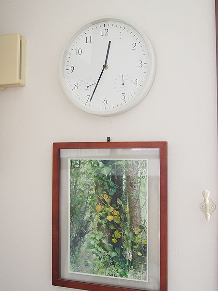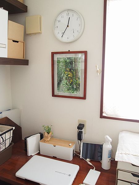リビング横のデスクスペースに以前はデジタルの温湿度計付き時計を