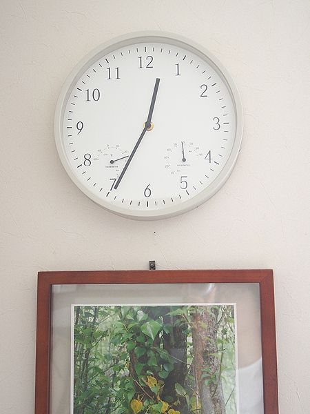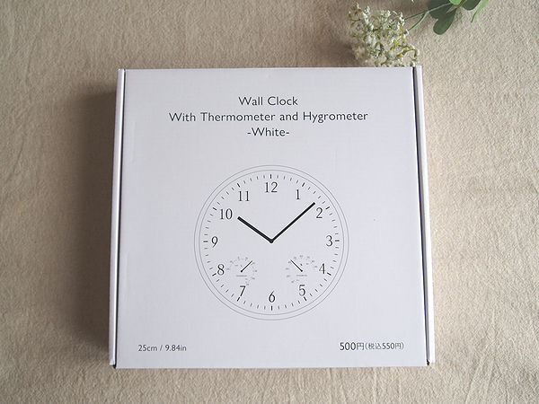 壁掛けタイプのアナログ時計で、温度計と湿度計付きです。
