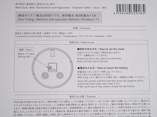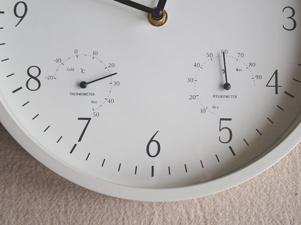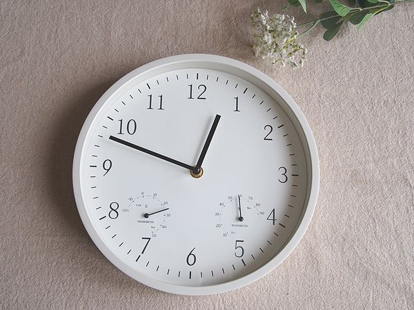 「掛け時計(温湿度付、WH ホワイト)」直径25cm